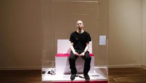 The exhibit is reminiscent of Holocaust architect Adolf Eichmann sitting in a glass booth at the 1961 trial in Israel which led to his execution. And it's certainly more provocative than British actress Tilda Swinton sleeping in a glass box at a recent performance at the Museum of Modern Art in New York.